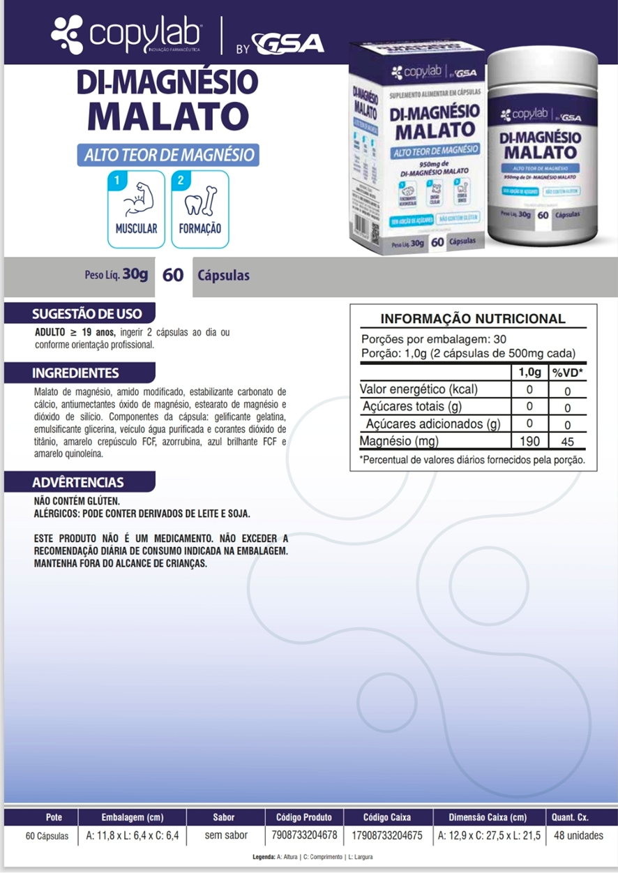 DI-MAGNÉSIO MALATO 950mg (60 cápsulas)
