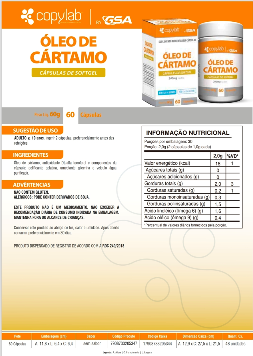 ÓLEO DE CÁRTAMO 200mg (60 CÁPSULAS SOFTGEL)