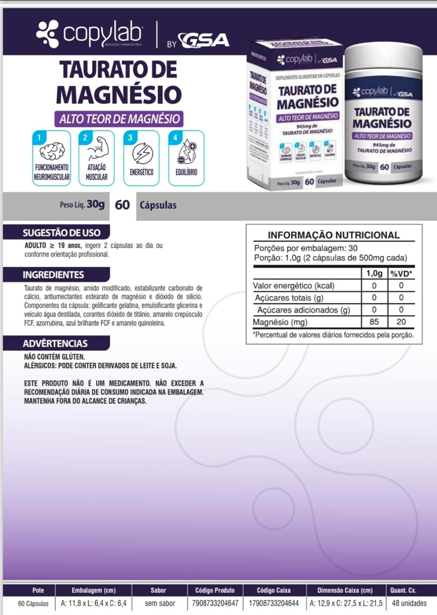 TAURATO DE MAGNÉSIO 945mg (60 cápsulas)